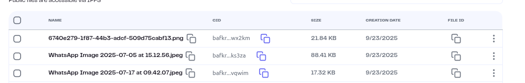 next to your file’s CID - Your IPFS hash is now copied to clipboard!